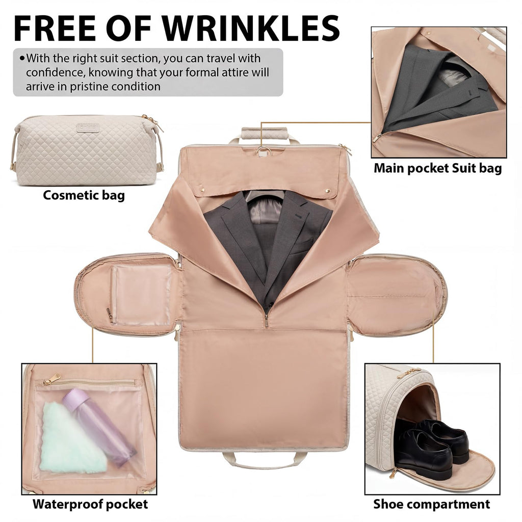 The Coolife Garment Bag (White) is designed for travelers who value precision, presentation, and seamless organization—ensuring every arrival feels confident, composed, and beautifully prepared.