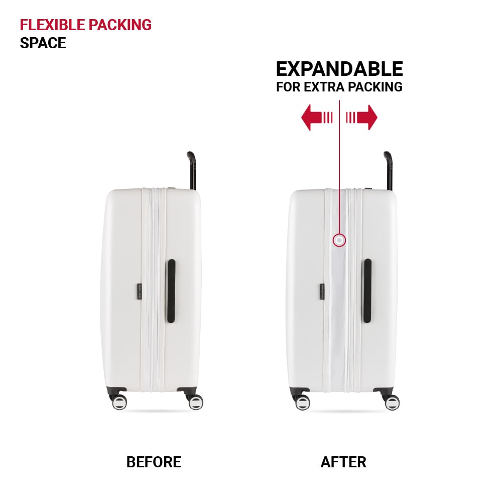 The SwissGear Wanderlust Pro Luggage Set (White) is designed for travelers who value preparedness, polish, and dependable performance—making every journey feel organized, effortless, and beautifully in control.